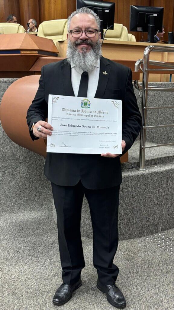 No dia 14 de outubro, o professor José Eduardo de Miranda, Ph.D, Diretor da Escola de Negócios, Saúde e Politécnica da UNIALFA, recebeu o Diploma de Honra ao Mérito concedido pela Câmara Municipal de Goiânia, em reconhecimento à sua dedicação à promoção do conhecimento, à valorização dos princípios humanísticos e à relevante atuação na literatura e na Maçonaria.