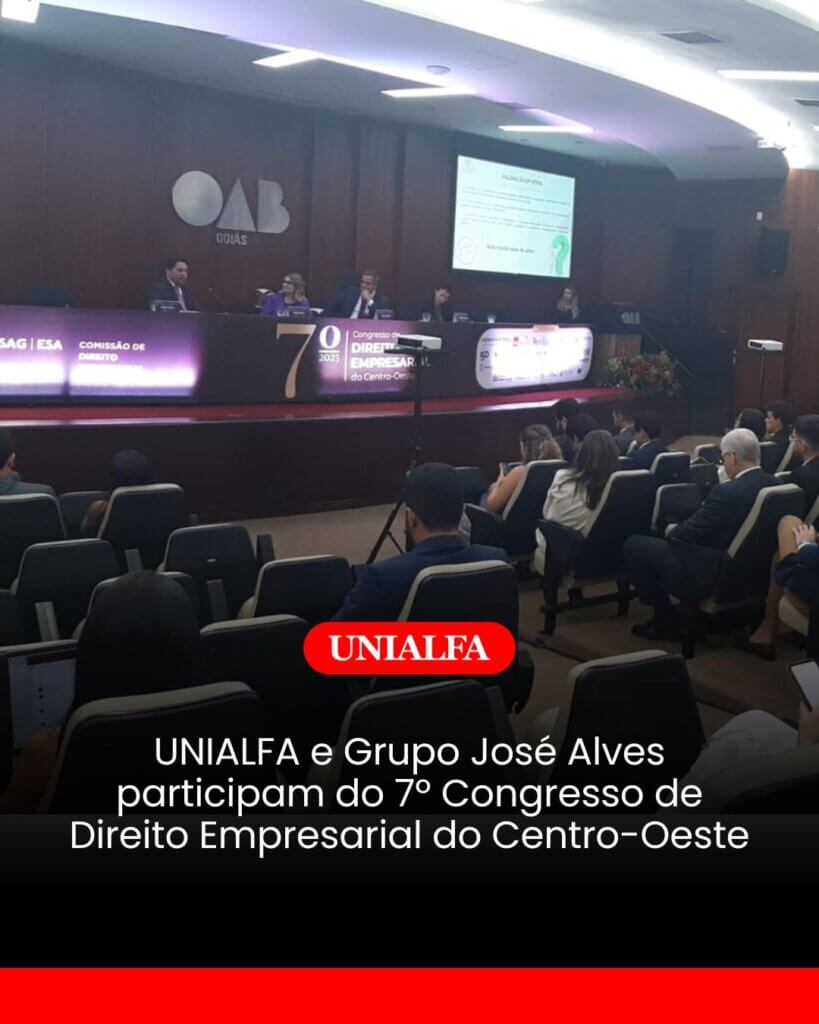 O Centro Universitário Alves Faria (UNIALFA) marcou presença no 7º Congresso de Direito Empresarial do Centro-Oeste, promovido pela Ordem dos Advogados do Brasil, Seção Goiás (OAB-GO), por meio da Escola Superior de Advocacia de Goiás (ESA-GO) e da Comissão de Direito Empresarial (CDE).